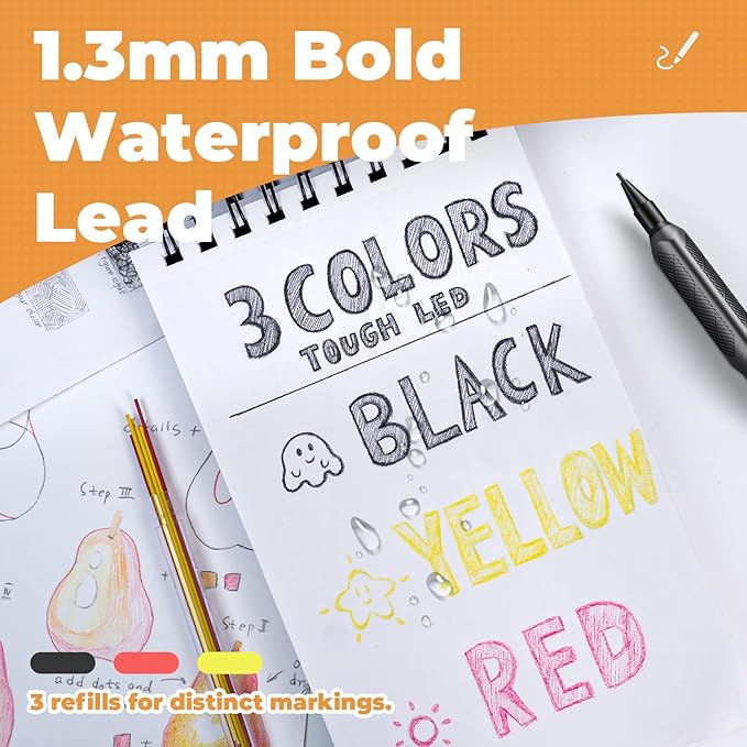 - Thicker Lead: The thick mechanical pencil with 24pcs 1.3mm lead, provides a thicker writing line, which is ideal for those who need a bolder, more noticeable mark, especially for writing, sketching, or marking tasks. In addition, excellent break-resistant performance with long-lasting use, ensuring uninterrupted focus on your work