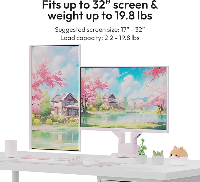 - Ergonomic Viewing Position - Offers smooth height adjustment, tilt, swivel, and pivot functions, allowing you to find the perfect viewing angles for both monitors.