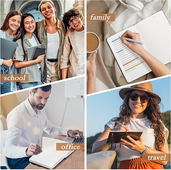 - A5 Hardcover Notebook: Features a high-quality matte PU leather cover with soft texture and stain-resistant durability. 160 pages of thick paper with rounded corner design to prevent curling. The 6-pack set is perfect for long-term backup and bulk purchases, effortlessly meeting both business and study needs.
