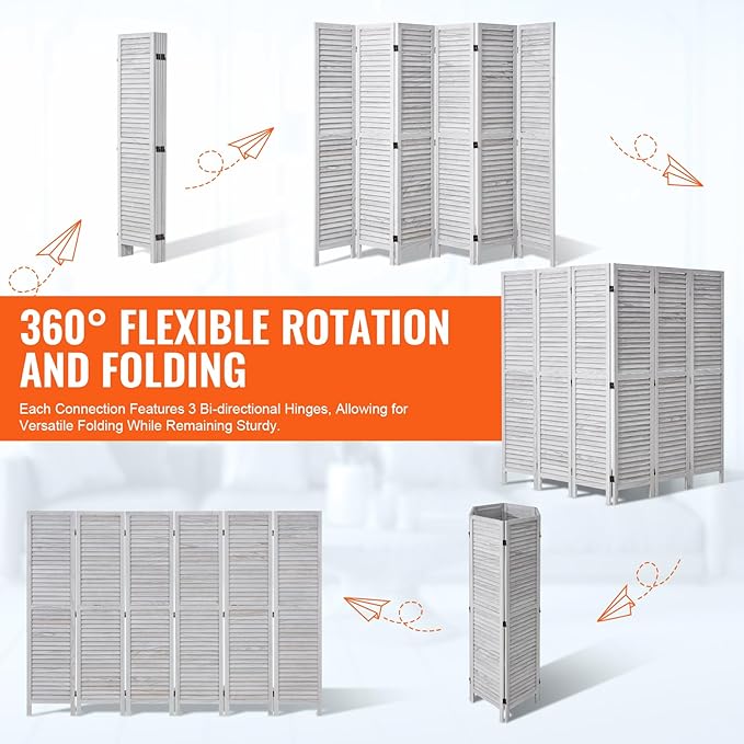 - Flexible 360Β° Movement: Each room divider panel connects with three sturdy double-directional hinges, allowing you to rotate and fold at any angle. When not using it, fold it and tuck it away in a corner. For added stability, arrange it in a zigzag pattern to keep it from tipping over when fully extended.