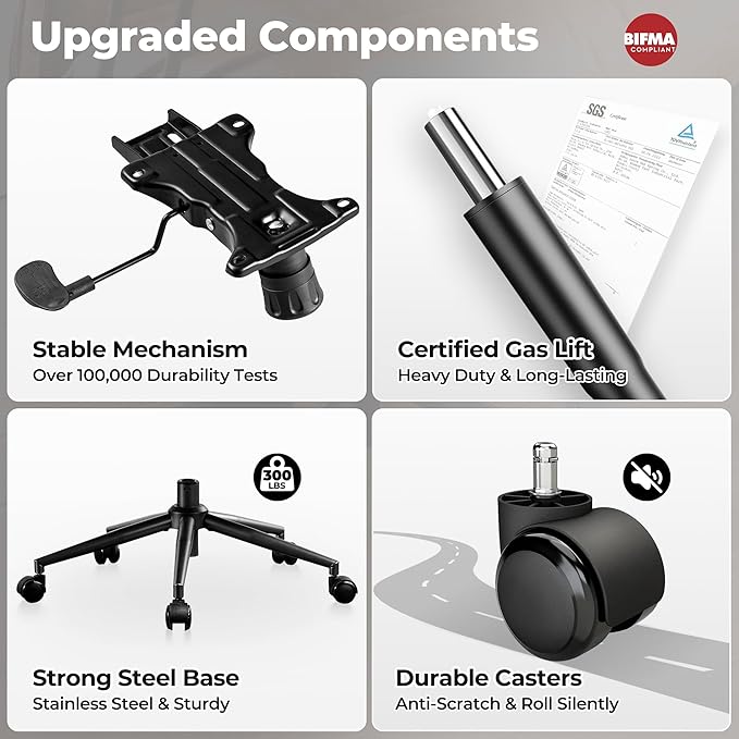 - Sturdy Construction: This padded task armchair features strong metal frame, curved backrest brackets that follow the curve of the human spine for stress relief, tested adjustment mechanisms and gaslift for stability even for tall and strong people, and high-quality 360Β° swivel rolling rotating casters avoid scratching the floor, can support up to 300 lbs. Whether you're working or relaxing, this modern chair offers a comfortable experience