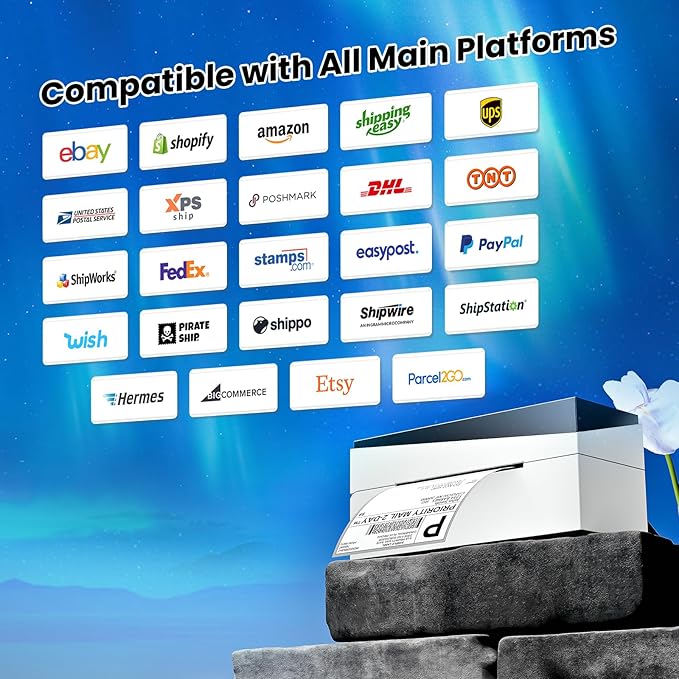 - [Strong Platform Compatibility] - Label printer for small business is compatible with USPS, UPS, eBay, Esty, Shopify, Amazon, PayPal, Poshmark, and other major sales platforms. Make printing more convenient. Ideal for your online small business for shipping packages