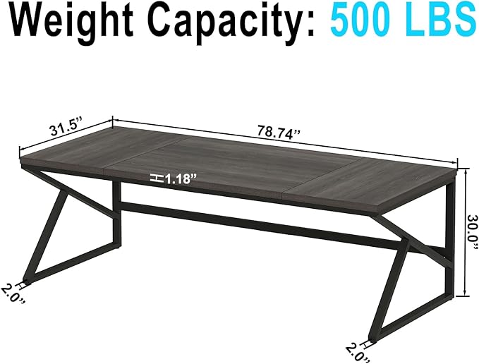 - 【Spacious Work Space & Leg Room】: Measuring 31.5"D x 78.7"W x 30.0"H overall, this extra long home office desk offers ample space to accommodate multiple monitors, pc, laptop, printers, files, books, lamps and any other office essentials, ensuring you have everything you need within arm's reach for enhanced productivity. Featuring two K-shaped metal legs with an open structure, this 78 inch large computer desk provides ample leg room, promoting comfort during extended periods of use.