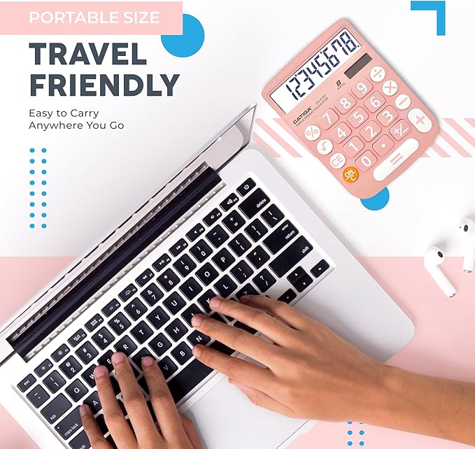 CATIGA Desktop Calculator 8 Digit with Solar Power and LCD Display, Big Buttons, for Home, Office, School, Class and Business, 4 Function Small Basic Calculators for Desk, CD-8185