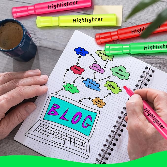 - Thoughtful Design Details: the highlighter come with a quality chisel tip, providing wide highlighting and thin underlining, which you can create thick and thin lines; And the fitting cap protects the nib when not in use