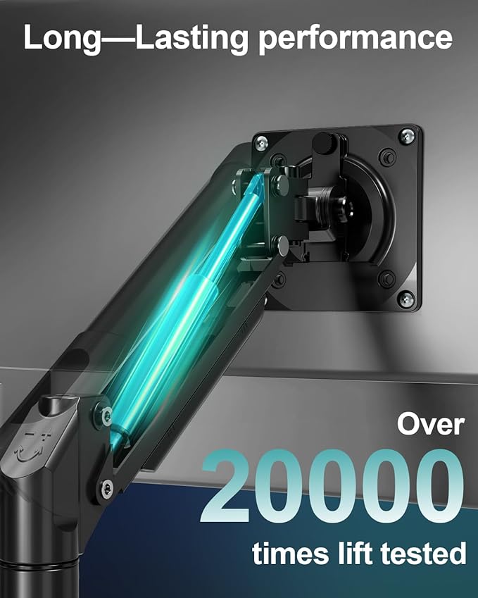 - Strong Support: The computer stand is designed with aluminum arm and a strong gas spring that has undergone 20,000 motion tests to ensure long-lasting performance and provides excellent stability to support monitors from 4.4 to 22 lbs. You can extend the monitor arm out 19.7β³to bring your screen closer or raise it up to 17.3β³above the desk surface for a better viewing position. This dynamic adjustment makes it possible to position your screen closer to eye level for more comfort.