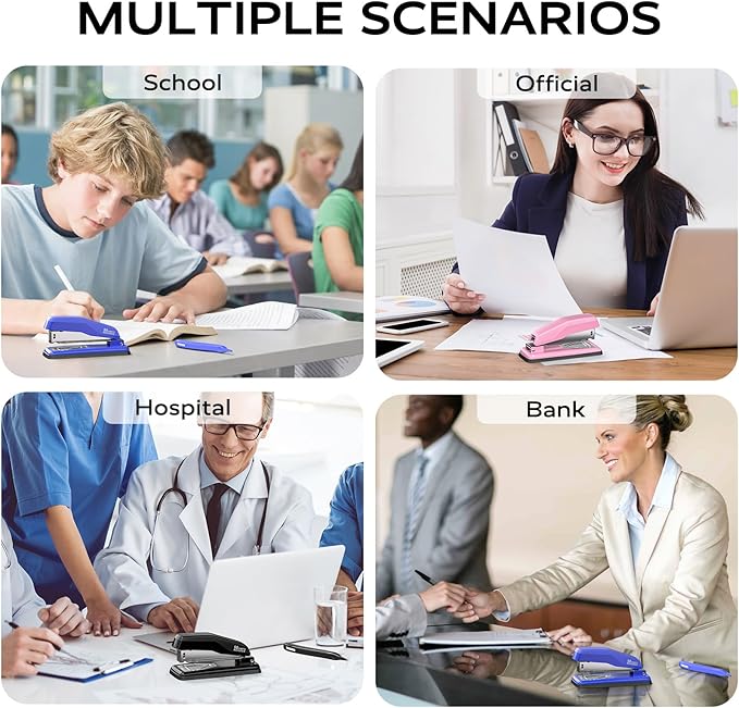 - 【Easy to Use & Comfort:】 Easy to use as a touch stapling stapler on the desktop or a handheld stapler on the go! Spring-loaded, anti-slip grip reduces hand strain during marathon stapling sessions. Suitable staple types: staples with 1/4" long leg for 25 sheets: #23/6, #24/6, #26/6(standard staples) and staples with 5/16" long leg for 50 sheets: #23/8.