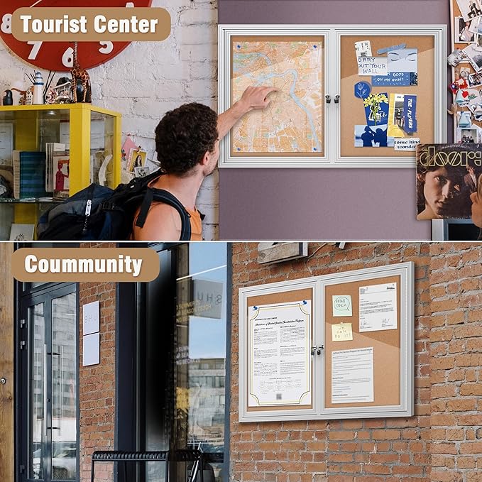 - ๐โใSecure Enclosed Bulletin Boardใ: This lockable bulletin board ensures the safety of your announcements and guarantees that posted items can only be removed by authorized individuals. Suitable for push pins, thumb tacks, or map pins, it's perfect for displaying notes, messages, pictures, memos, calendars, menus, reminders, and more. Ideal for home, office, or business environments.