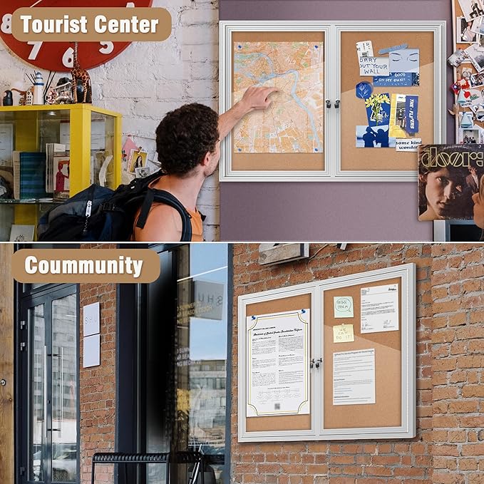 - ๐โใSecure Enclosed Bulletin Boardใ: This lockable bulletin board ensures the safety of your announcements and guarantees that posted items can only be removed by authorized individuals. Suitable for push pins, thumb tacks, or map pins, it's perfect for displaying notes, messages, pictures, memos, calendars, menus, reminders, and more. Ideal for home, office, or business environments.