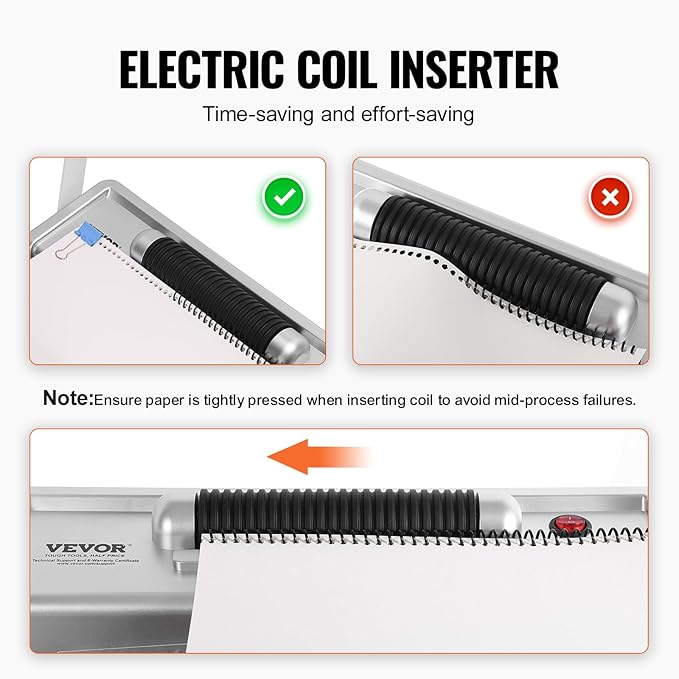 - Easy to Operate: Designed for user convenience, our coil binding machine features adjustable edge guides and side margins, and adjustable coil binding spine sizes from 1/4" to 2". Using this electric coil binder saves time and energy compared to manual methods.