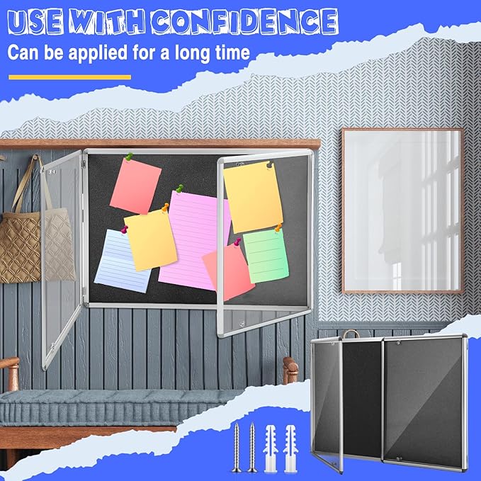 - Wide Application: the bulletin board cabinet is suitable for schools, offices, shops, homes, apartments, hospitals, dormitories, classes and other public places, and can be applied for multiple purposes, such as posting notice and announcements, displaying artwork or photos, and presenting public information