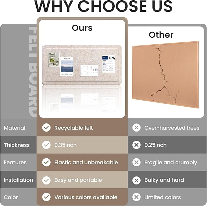 - Customizable Design: Tailor your tack board experience with our large cork board alternative. Each package includes 1 high-density felt panel +40 Bonus Pushpins. We offer round-the-clock customer service for any questions or concerns, please feel free to reach out to us if you need help.