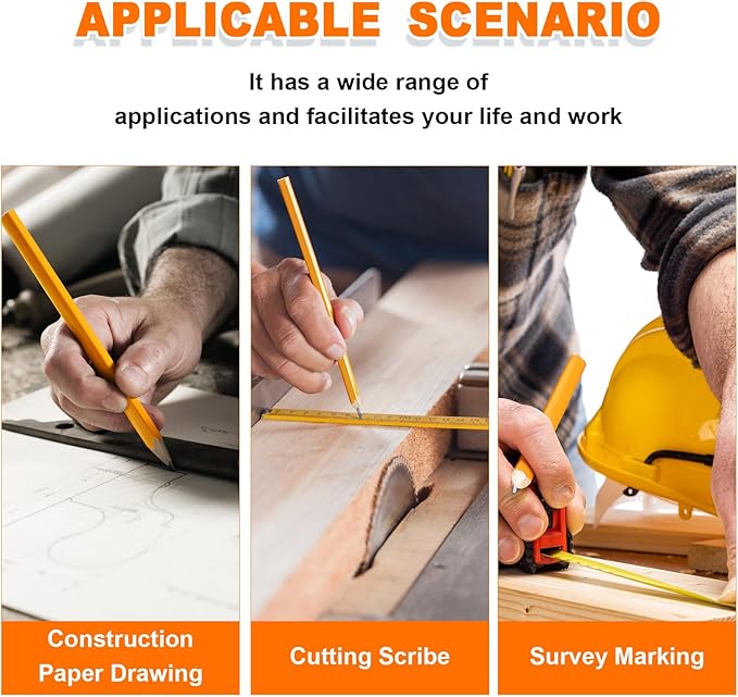 - Multipurpose: wood carpenters pencil can withstand the pressure of marking on hard, rough, and uneven surface materials, such as wood, plywood, cardboard, unprocessed wood, wood, paper, concrete, bricks, and so on