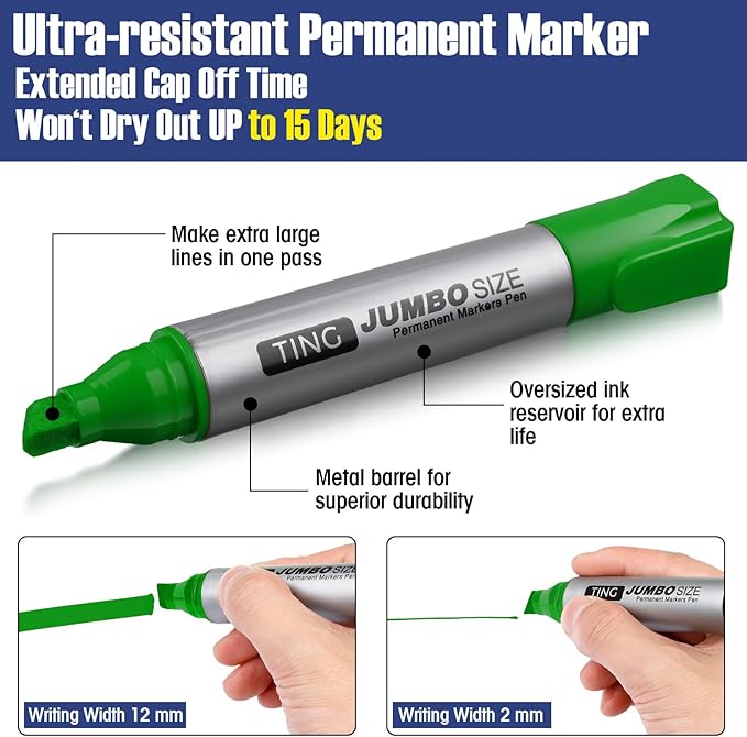 - Waterproof and Not Easy to Fade: the large permanent marker are waterproof, which can allow you to use out, to write something on the stuff outside, and it won't fade easily, can serve you for a long time