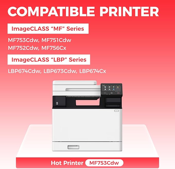 - Compatible Printers: Compatible with Canon ImageCLASS “MF”Series:MF753Cdw, MF751Cdw,MF752Cdw, MF756Cx ImageCLASS “LBP”Series:LBP674Cdw, LBP673Cdw, LBP674Cx Printer.
