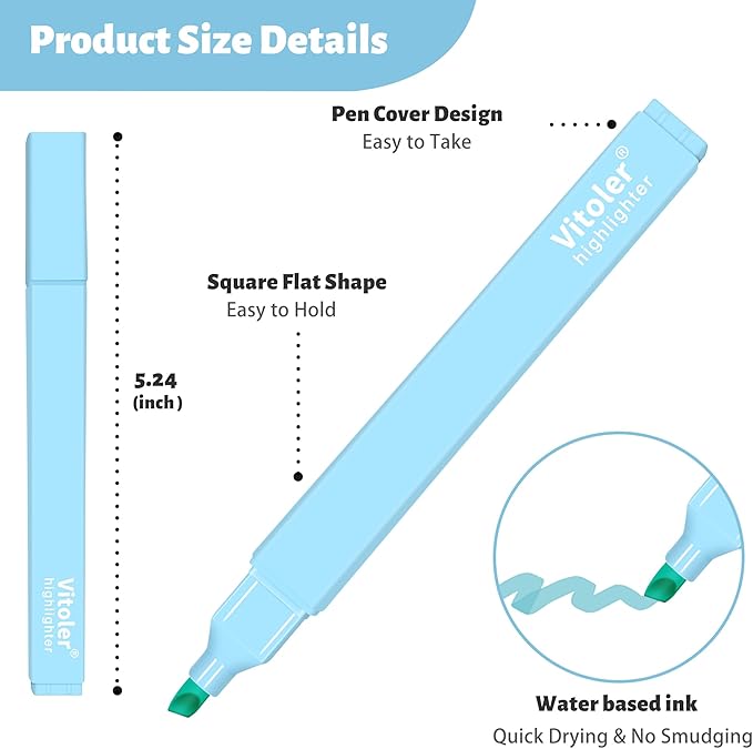 - Easy to Hold: The pastel highlighter is designed with square shape,itβs comfortable and easy to hold, without a sore hand and don't roll around while using.