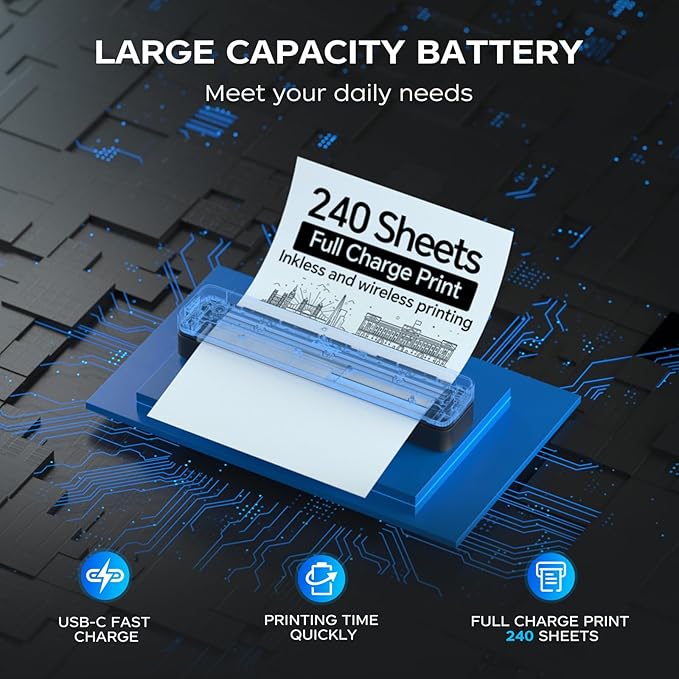 - ๐Long-Lasting Battery with a Single Charge: One of the standout features of our printer MT610 is its long - lasting battery. With a single charge, you can print up to 260 pages. Whether you're on a multi - day journey or in an area with limited access to power outlets, you can rely on this printer to keep up with your printing demands. The energy - efficient design ensures that the battery doesn't drain quickly, even during extended use.