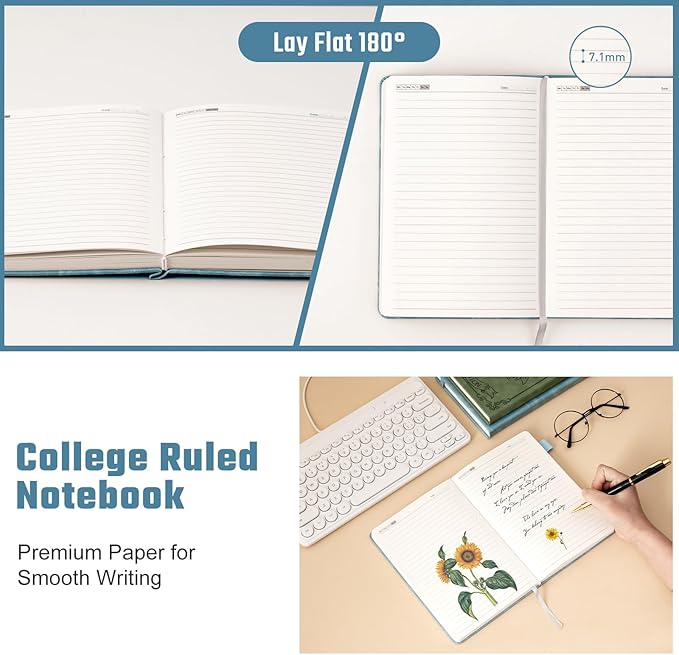 - Smooth Writing Experience: A5 size lined notebook, 7.1 mm college ruled journal for writing is made of 100 GSM high quality paper, no ink bleed when writing, can be 180 Β° flat, give each girl a comfortable writing experience.