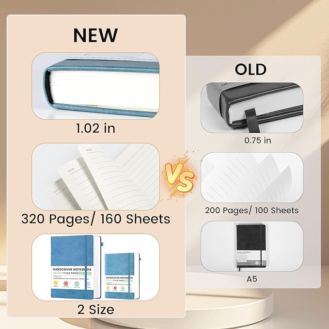 - Premium Leather& Details: 2 pack journaling notebooks mix leather hardcover with classic style, great for women& men. Inside: a silk bookmark (keeps your place) and an elastic band (secures pages), great for daily use