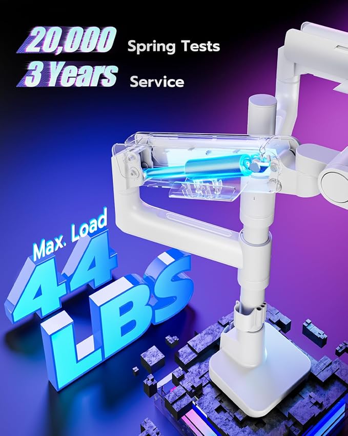 - 【Stable support】This vertical dual monitor stand features industrial-grade gas springs to support heavier duty screens, eliminating the rebound risks associated with traditional mounts and ensuring smoother adjustments. Tested over 20,000 times, this dual vertical monitor mount maintains stability even in fully extended positions, preventing concerns about monitor drops that could damage both your monitor and floor.