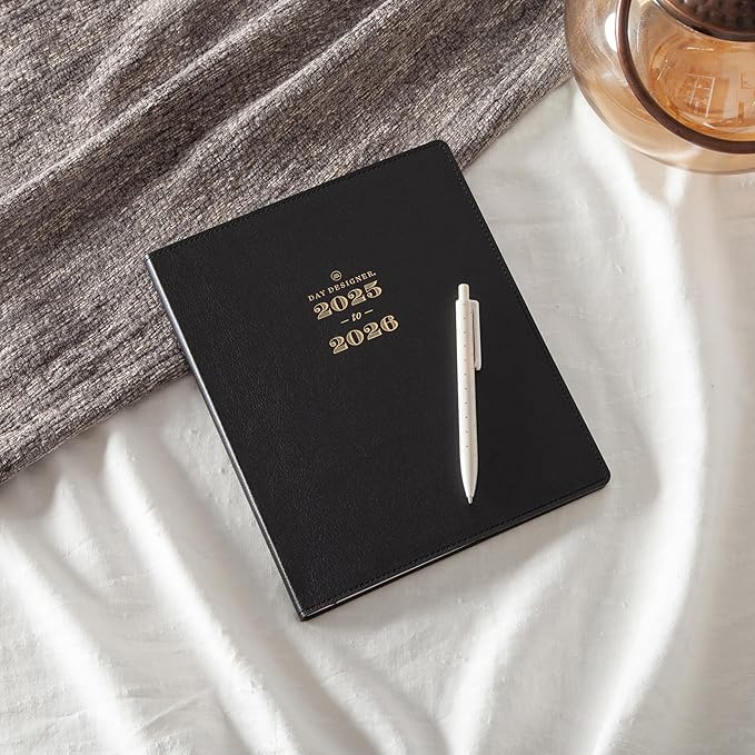 Blue Sky Day Designer 2025-2026 Academic Year Weekly and Monthly Planner Calendar, July 2025 - June 2026, 12-Month, 8" x 10", Faux Leather Cover, Bookbound, Black