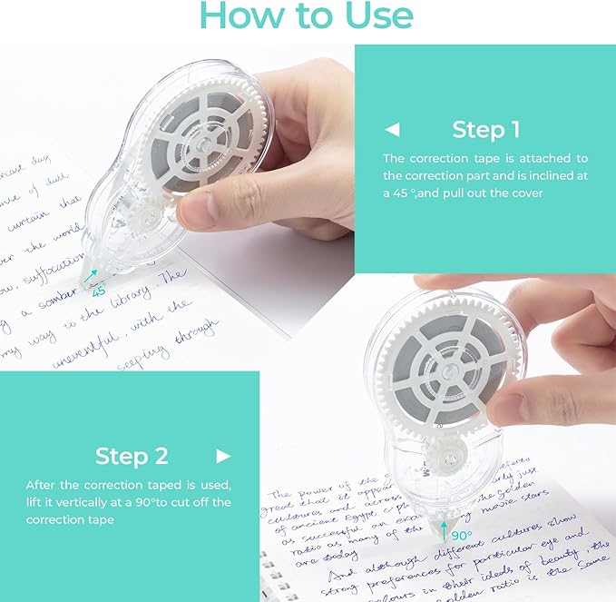 - Easy To Use:Just hold the correction tape at a 45 degree angle to the paper surface, press lightly and drag the tape back to completely cover the surface to be modified.