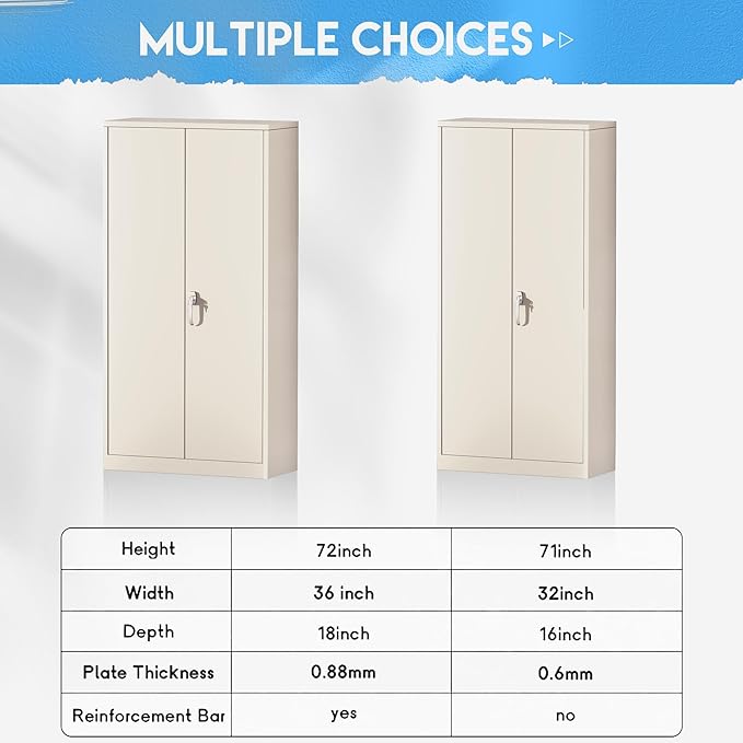- 【Upgrading Locking System】Greenvelly office storage metal cabinet with locking doors can be locked through the 3-point interlocking system of security upgrade, bringing higher security to your important items and file. High quality safety cabinet suitable for office home and school. The tall filing cabinet is equipped with 2 keys to prevent loss. If you lose your keys or need more keys, we will provide you with new keys