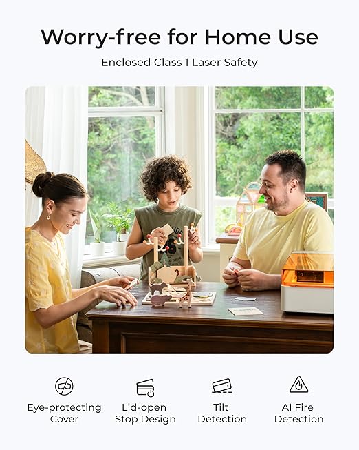 - Beginner-Friendly Design with Pro-Level Results: Pre-assembled and ready to use out of the box, the Class I laser engraver and cutter machine features snapshot preview and pin-point positioning for flawless execution. Powerful Software XCS built-in Artimind AI, easy to change the text to artwork. One click sets the optimal engraving parameters, saves time, and creates with confidence.