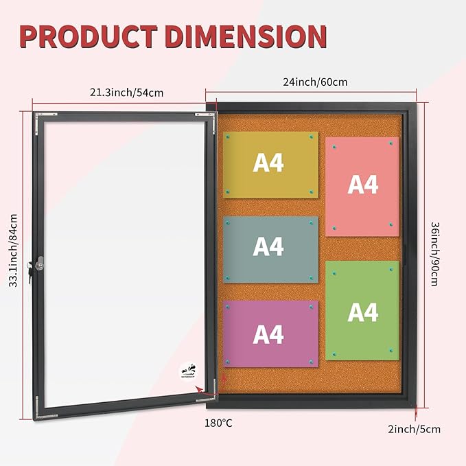 • πŸ“Œ Spacious 36x24in Outdoor Display Case: Ample space for posters, certificates, and calendars. Mounts vertically/horizontally at entrances or walls.