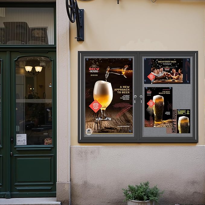 - Spacious Enclosed Bulletin Board with Dual Swing Doors : Measuring 44x32 inches, this large enclosed bulletin board provides ample space to display flyers, posters, schedules, and announcements. The dual swing doors make it easy to open and update both sections independently β ideal for campus walkways, outdoor business entrances, or public message centers.