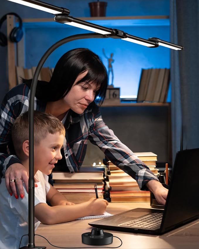 - 【Eye-Caring Lighting for Comfort】 Designed with asymmetrical optical lighting, this lamp minimizes screen glare, eliminates flicker, and reduces blue light hazards, safeguarding your eyes even during long hours of use. Its soft, uniform brightness ensures a comfortable lighting environment, making it ideal for activities like reading, working, and studying. This feature is perfect for kids' desks or bedrooms, supporting their vision and focus.