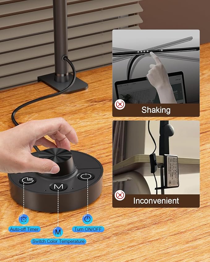 - 【Stepless Dimming with Memory & Timer Features】 Our LED desk lamp offers stepless dimming (1%-100%) and adjustable color temperatures (2600K-6500K), allowing personalized lighting for any activity. The desktop dimmer ensures quick control, while the memory function restores your last settings without needing to reset. Additionally, the 30-minute timer helps manage your time effectively, improving productivity during work, study, or creative tasks like drawing, sewing, or crafting.