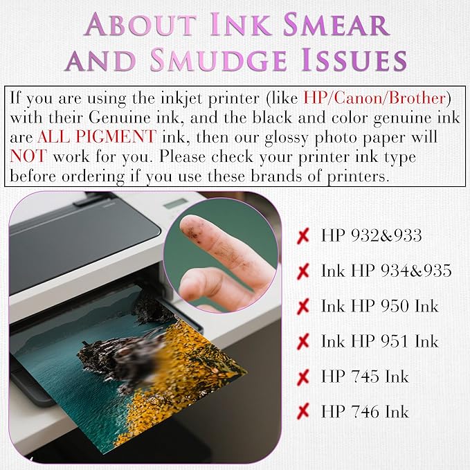 - Compatible Printers: Perfect work with inkjet printers and must use DYE INK, Fast Dry, No Smudging, No Smearing. NOTE: This paper is very thick, about 11mil(0.28mm), please confirm your printer can handle 61LB (230GSM) cardstock paper before ordering