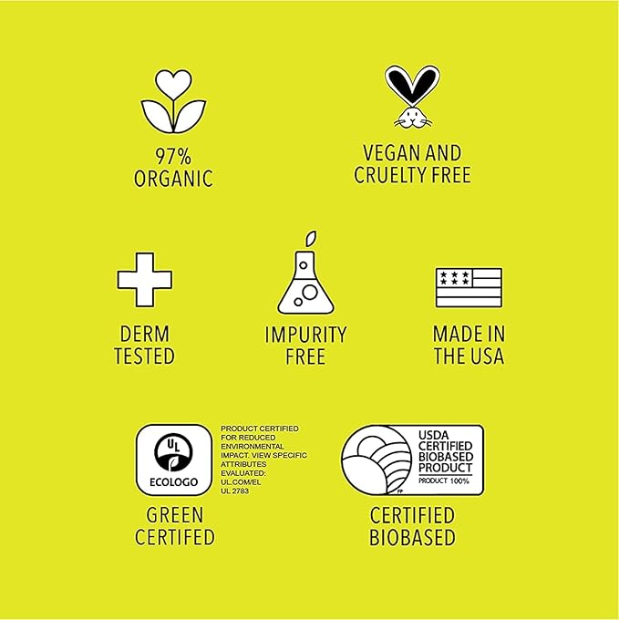 • 97% Organic Ingredients, 70% v/v USDA Organic Sugar-Cane Ethyl Alcohol, Green-Certified, USDA Certified Biobased Product 100%