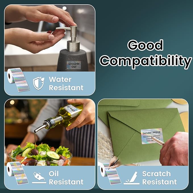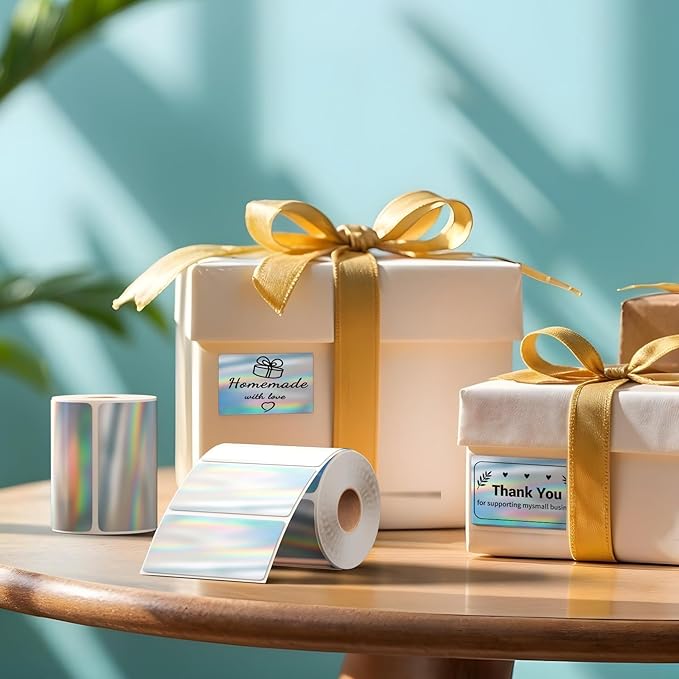 2.25x1.25 Inch Thermal Labels Sliver, Holographic Sliver Barcode Thermal Labels for Thermal Printer and Small Business, Multi-Purpose Rectangle Stickers, 500 Sheets/Roll