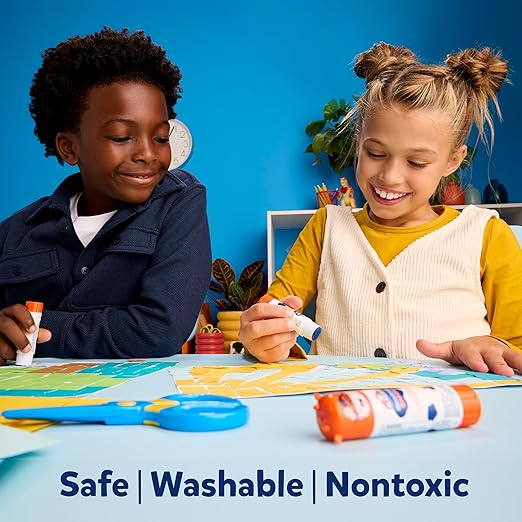 Elmer's BlooStick Buddies Glue Sticks, Disappearing Blue Glue Stick, Anti-Roll Cap, 6g, 48 Count