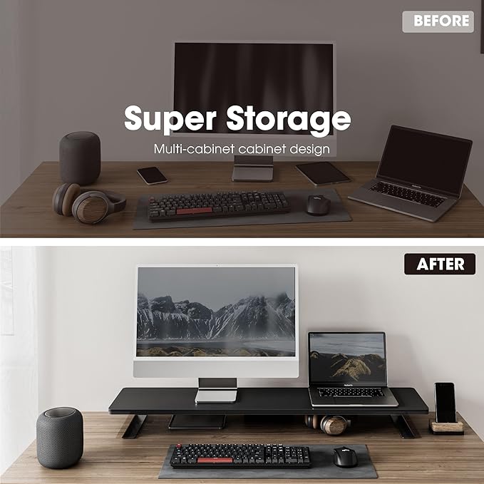 - 【Super Easy to Assemble】Our computer monitor riser comes with pre-drilled holes, all you need to do is screw the 4 brackets into the panel. You can install your dual monitor riser within 2 minutes!