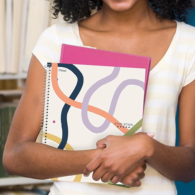 Five Star Spiral Notebook + Study App, 1 Subject, College Ruled, 8-1/2" x 11", 80 Sheets, Fights Ink Bleed, Water Resistant Covers, Organic Lines (820233F)