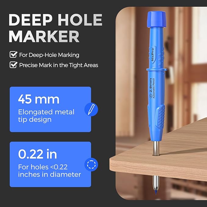 - Deep Hole Marker Pencil: The construction pencils designed with a 45mm elongated tip, which is more convenient to precise mark in deep or narrow holes and gaps that traditional pencils can't reach