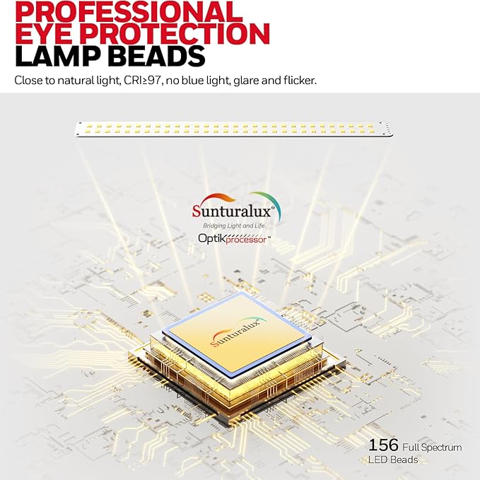 - [EYE-HEALTHY NATURAL LIGHT SIMULATION] The Honeywell LED clamp desk lamp features 156 Sunturalux chips delivering 1200LM of uniform lighting with exceptional β₯97 CRI. This flicker-free, glare-free illumination mimics natural sunlight to reduce eye strain during prolonged computer use. Ideal bright task lamp for architects, designers, and gamers, perfect for drafting tables, workbenches, and monitor setups