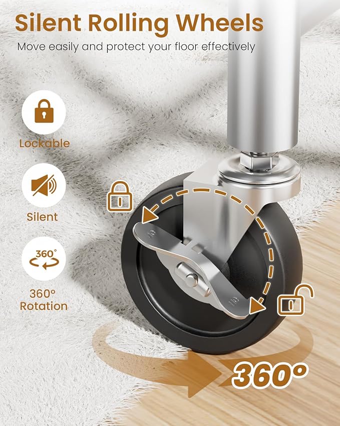 - ๐๐๐๐๐๐, ๐๐๐๐๐๐๐ & ๐๐๐พ๐๐ผ๐ฝ๐๐ ๐พ๐ผ๐๐๐๐๐: The casters of our coat rack have been carefully designed to move over a variety of floors such as hardwood, tile or carpet. Additionally, the 2 lockable wheels provide security, allowing you to keep your wardrobe rack securely in place when needed.