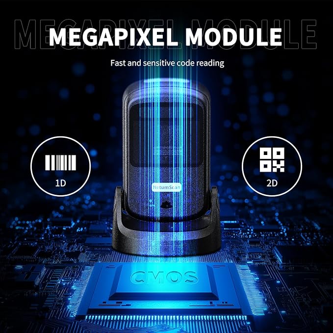 - 【1M High-Resolution CMOS Sensor】Equipped with a 1280×800 CMOS sensor, this scanner delivers rapid, precise, and stable barcode recognition, ensuring swift processing even for small or damaged barcodes. Widely used in supermarket, convenience store, retail shop, library, drugstore, catering services and other industrials which need payment scanning.