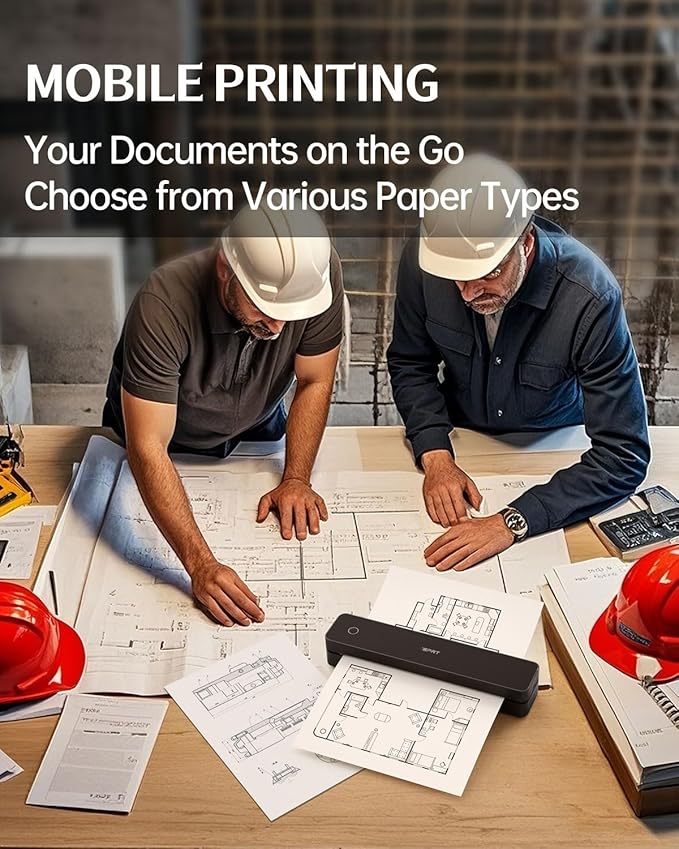 - Ultra Light Travel Printer– At just 1.1lb (526g) and 1.6 inches thick, this portable thermal printer fits easily into your backpack or work bag. Whether you're on a business trip, campus, café, or coworking space, print contracts, lecture notes, or documents on the go—no desk needed!