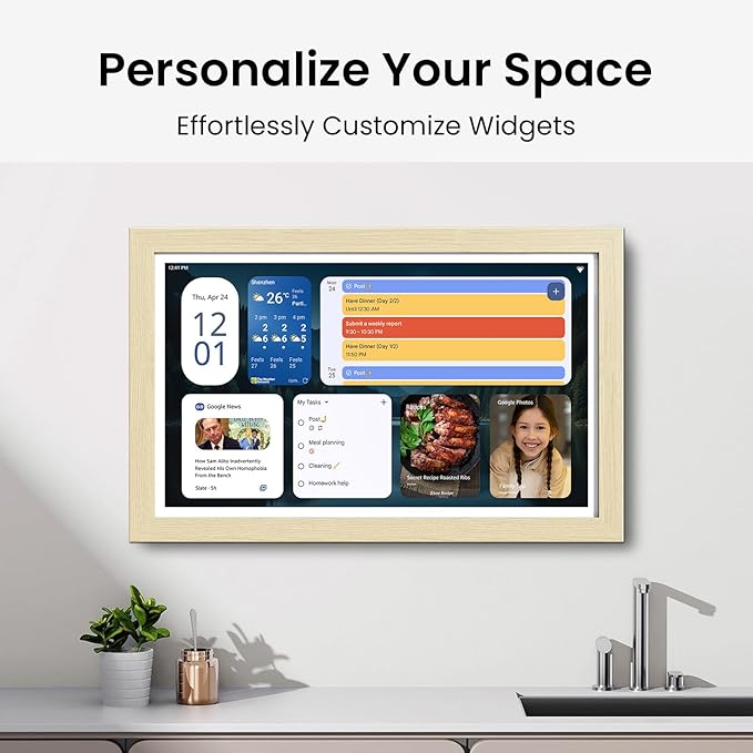 - PERSONALIZED DASHBOARD WITH CUSTOM WIDGETS Design your perfect homepage with drag-and-drop widgets for chores, grocery lists, meal plans, countdowns, and weather. Fully compatible with Google Play—download your favorite apps and create a dashboard that reflects your family’s daily rhythm and priorities.
