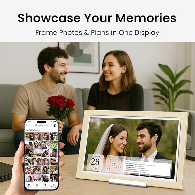 - MEMORY WALL & SMART SCREENSAVER – TOTALLY FREE Turn your calendar into a live digital photo frame by showcasing your favorite memories. Easily connect with Google Photos or upload directly—no subscriptions or third-party apps required. Display photos, family celebrations, or even motivational quotes as your screensaver.
