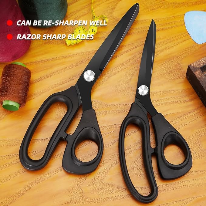 - 【Wide rang of use】 Whether it's denim, leather, tufting, fabric, light plastics, or other materials, these scissors can handle it all with ease. And Easy to cut flimsy paper, cloth, ribbon, and thread,Perfect for tailor , craft room, student or office.
