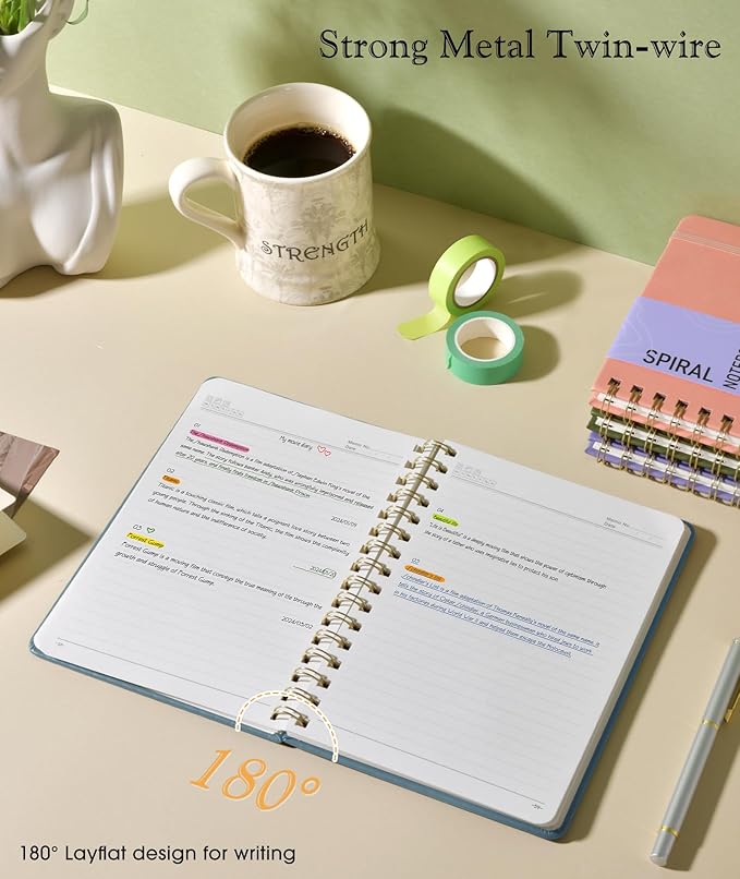 - 【Metal Twin-wire Construction】Our wire-bound spiral journal notebook has a sturdy gold-color double wire spiral with easy-to-turn pages and keeps pages attached reliably. Metal wire ring makes it easy to tear out pages without disturbing the rest of the pretty notebook. The 180°flat binding makes it easy to take notes with either hand, making it easier to read and more efficient to keep track of things.