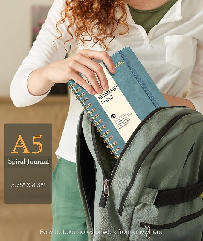 - 【Journal Notebook with 150 Numbered Pages】 The lined spiral journal notebook features water-resistant vegan leather cover touched comfortably, which will help to protect the pages inside and provide a comfortable writing surface. With 150 numbered pages and a 2-page content pages for keeping track of anniversaries, special events, important details, making it easier to review your notes later. Inspirational quotes on the info page to motivate moving forward.
