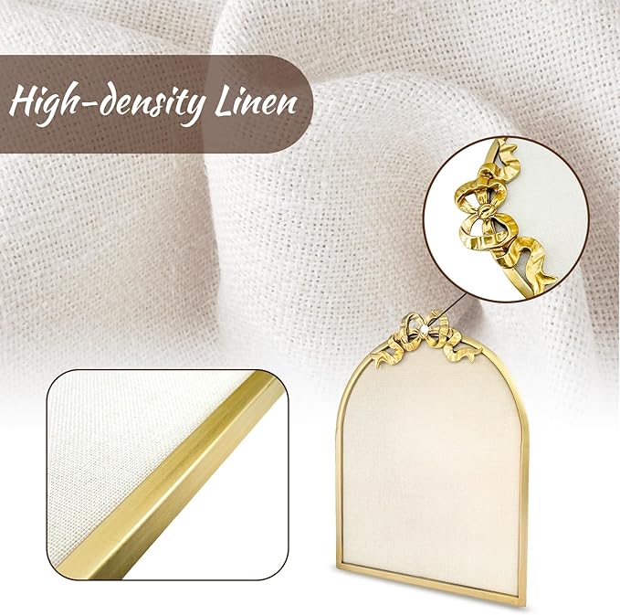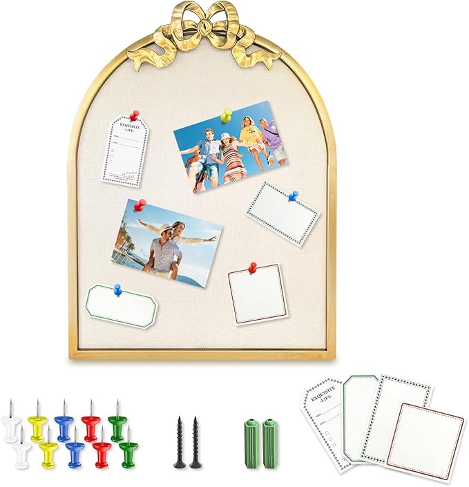- 【French Vintage Elegance】Inspired by classic European aesthetics, this arch-shaped bulletin board showcases a gracefully designed gold bowknot, exuding timeless charm. Its refined silhouette makes this decorative cork board a striking statement piece for vintage, shabby chic, or Parisian-style interiors.
