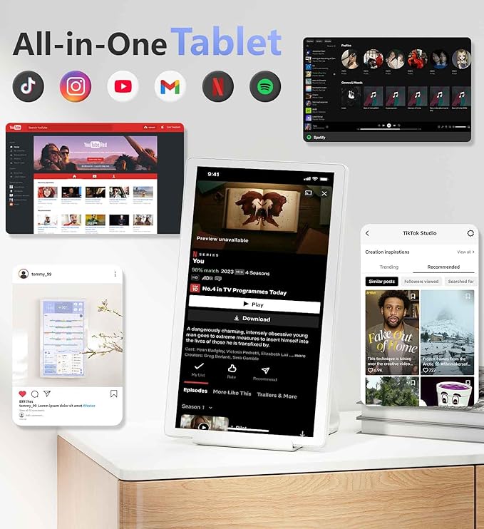 - Customizable Dashboard: Our all in one smart family calendar support personalize your home screen with widgets such as a calendar, chore chart, meal planner, media, and weather. Choose portrait or landscape mode to fit your space and preferences.